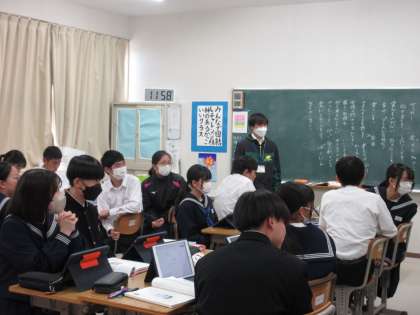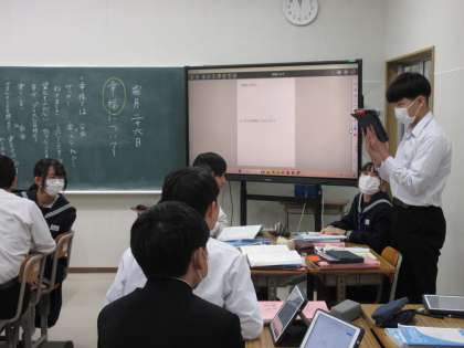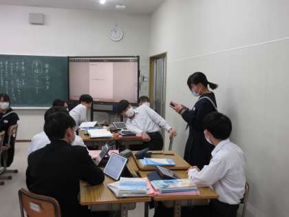 11月26日(火)今日の授業風景 その2 公開日 2024/11/26 更新日 2024/11/26 お知らせ 3年生の国語科の授業です。 教材文「幸福について」の学習を進めていました。単元の導入で「幸福」について考える生徒たち。グループで話し合ったことを生き生きと全体に伝え合う姿がとてもよかったです。いろいろな角度から「幸福」について、考えを深めていくことができていました。