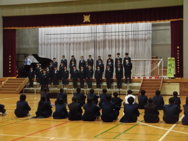今日は1年生が「けや輝祭の合唱コンクール」に向けたリハサールを行いました。中学校に入学して半年。1年生にとっては初めての合唱コンクールです。本番に向けて不安や心配があると思いますが、日々の練習や今日のリハーサルの反省を生かし、頑張ってください。