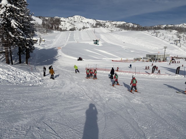 スキー学習も最終日を迎え、生徒の皆さんもここまで滑ることができるようになりました。10時30分までレッスンを行います。