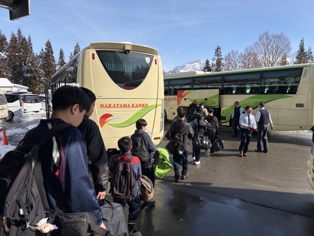 3日間お世話なった上越国際スキー場を出発しました。天気も良好です。安全に配慮し、学校に帰ります。