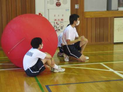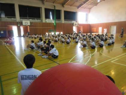 2年生の全体練習。実行委員が競技の説明をしていました。