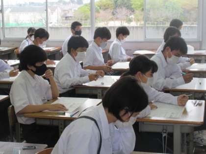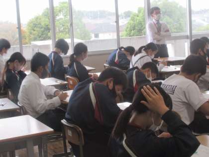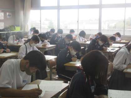 1年生のテストの様子。皆真剣に取り組んでいました。