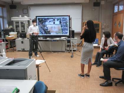 県南英語プレゼンテーションフォーラムで激戦を勝ち抜き,見事県南代表となった3年生。昨夕の練習風景です。県大会はビデオ提出での審査となります。頑張ってください!