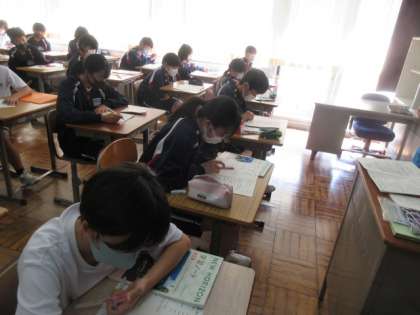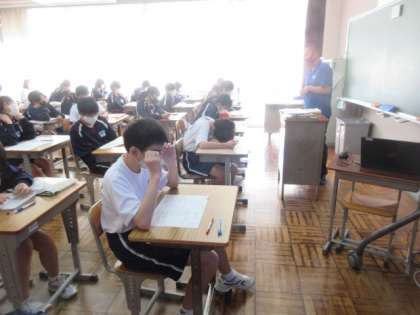 1年生の英語の授業は,昨日行ったテスト問題の確認。詳細な先生の説明を真剣に聴いていました。