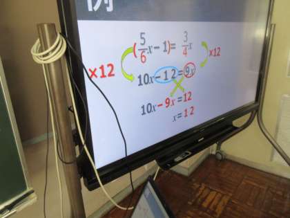 1年生の数学の授業はテスト返し。問題を一つずつ確認していました。