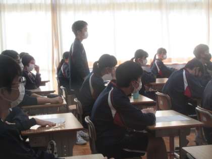 各クラスの朝の会の様子。どのクラスも落ち着いた雰囲気で朝の会を進めていました。