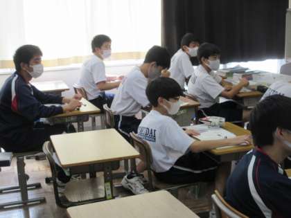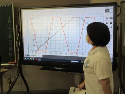 2年生の数学の授業は少人数体制。一次関数の応用問題をしていました。