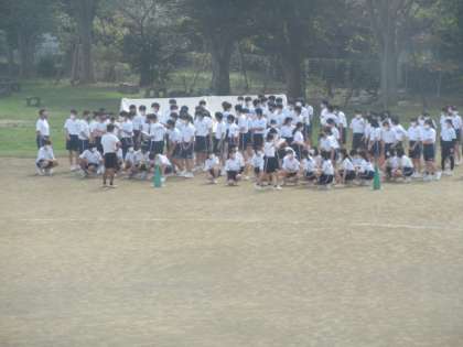 3年生の体育祭練習。動きの確認や,団体種目のやり方について,共通理解を図っていました。