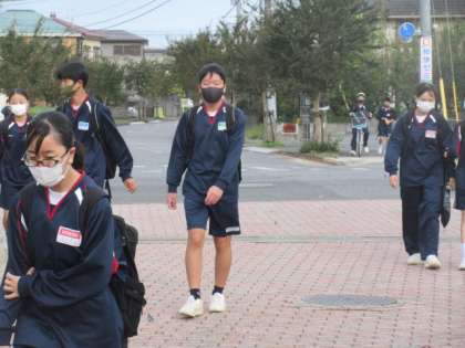 生徒は元気に登校してきました。今日も頑張りましょう!
