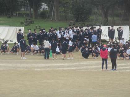 2年生の学年練習。入場から競技までの流れを確認していました。