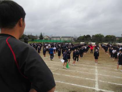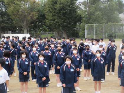 オンライン練習をしている間に,雨が上がりました。外での位置関係の確認を行うことになりました。