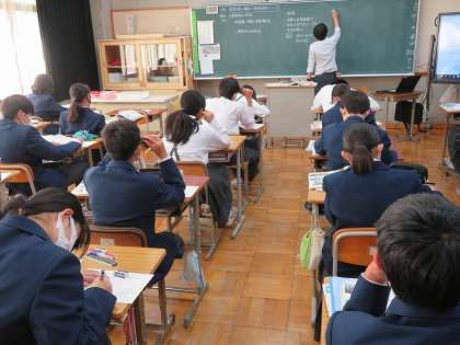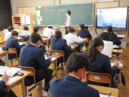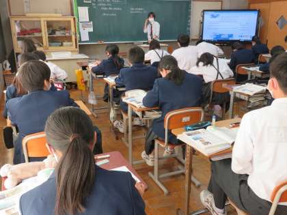 琵琶湖の開発の環境保全について,考えていました。琵琶湖を開発する利点等を,ワークシートにまとめ,発表していました。
