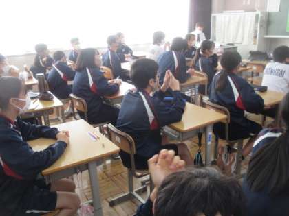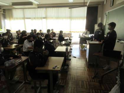 1年生の学活は,合唱について。練習方法や各パートの状況について話し合っていました。
