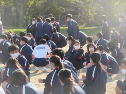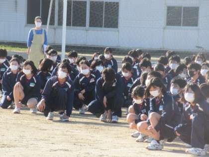 全員が避難し,人数確認・整列した時間は約4分。全体指導で,地震の怖さ,訓練の大切さを共有し,クラスに戻って担任の先生の話を聞きました。