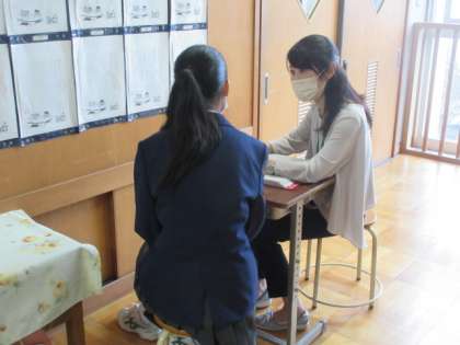 今日から三者面談です。これまで,各担任の先生は,生徒と個人面談を繰り返して,気持ちの共有を図っています。特に3年生は,進路に関する確認をしています。実り多い面談になればと思います。
