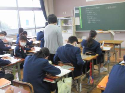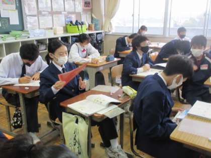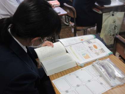 2年生の家庭科の授業は,食生活の課題について。ワークシートを用いて整理していました。