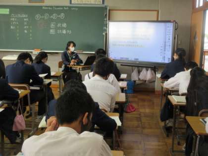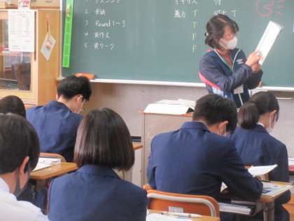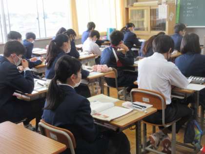 3年生の英語の授業はリスニング。皆真剣に聴いていました。