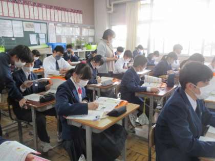 2年生の家庭科の授業は,衣生活について。今まで学習した内容を確認していました。