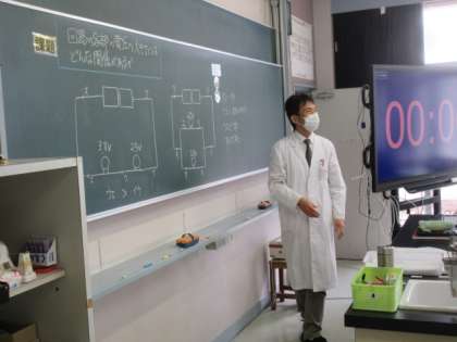 2年生の理科の授業は電流について。回路にかかる電圧について,考えていました。