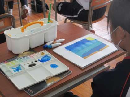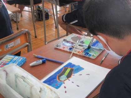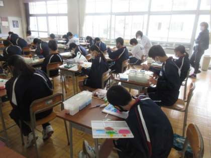 1年生の美術の授業は色について。色彩を考えながら作品を仕上げていました。