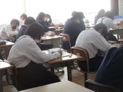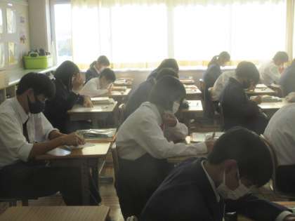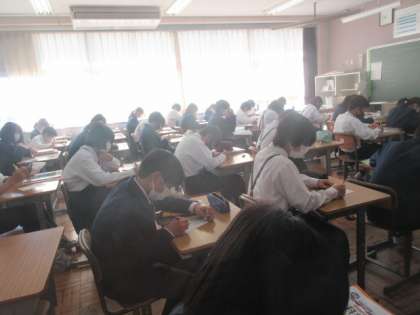 1年生の英語の授業は,リスニングの小テスト。皆真剣に取り組んでいました。