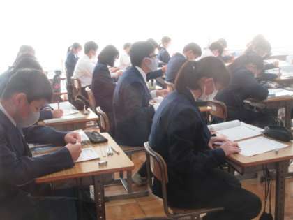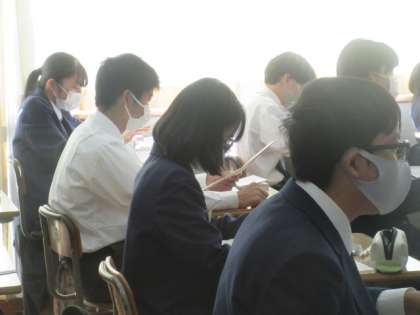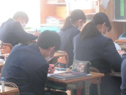 3年生の英語の授業は,既習事項の確認。ワークシートを使って整理していました。