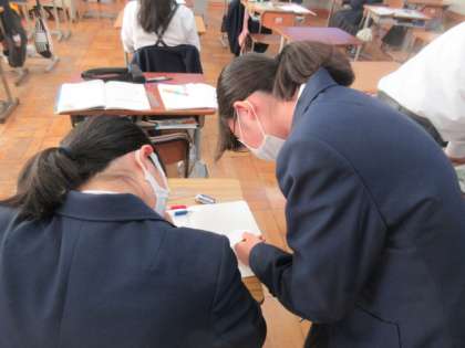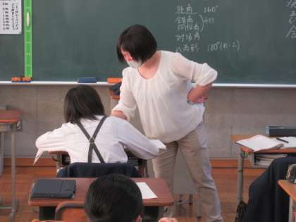 2年生の数学の授業は,少人数体制。図形の性質について,意見を交換していました。