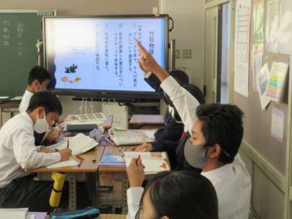 1年生の国語の授業。竹取物語の登場人物にスポットを当てて考えていました。