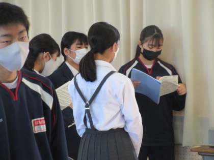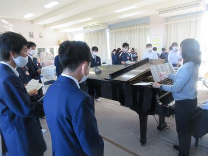 2年生の音楽の授業は,合唱練習。皆真剣に取り組んでいました。