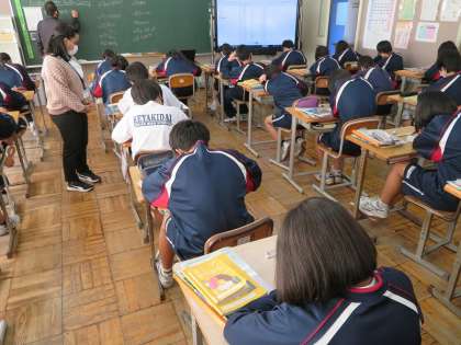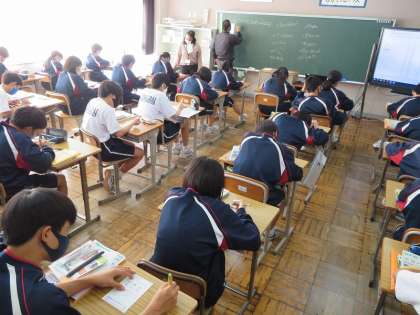 基本的な単語を確認した後,聞き取り問題に挑戦していました。正確に聞き取ろうと集中して取り組んでいました。