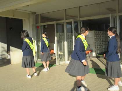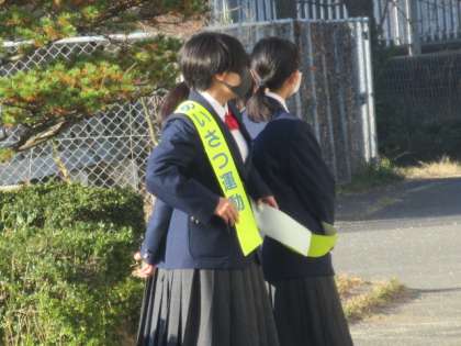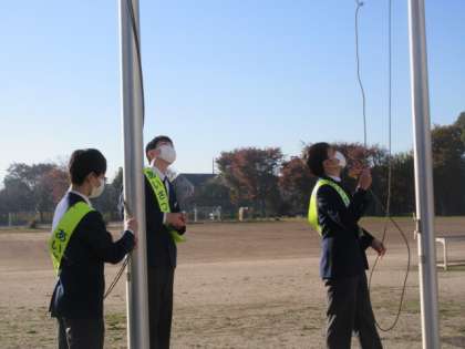 生徒会本部役員の生徒は,あいさつ運動と旗揚げを行っていました。
