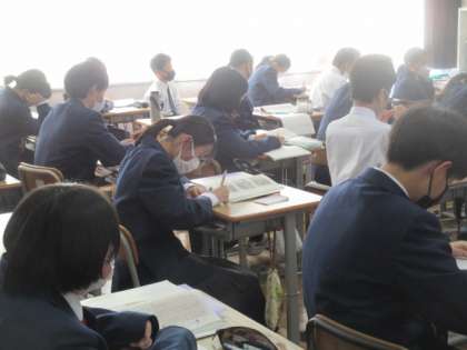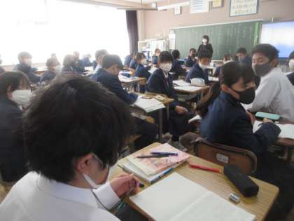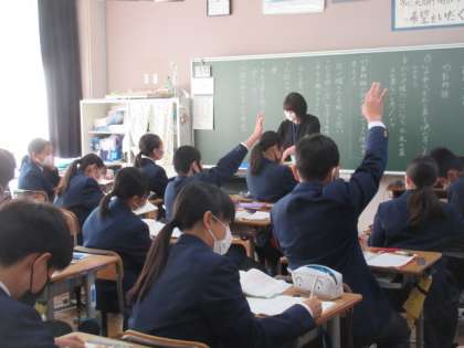 1年生の国語の授業は竹取物語について。読んだ感想や,なぜ長い間、読まれ続けているのかについての意見を,積極的に発表していました。