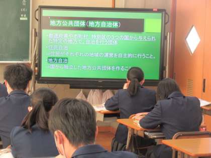 3年生の社会の授業は地方自治体について。皆一生懸命取り組んでいました。