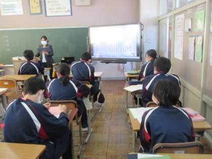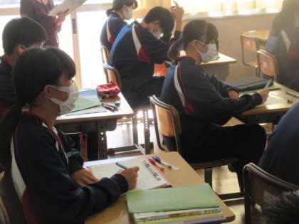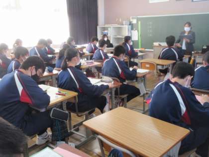2年生の国語の授業は平家物語について。前回,班毎に音読した際の講評を先生から聞いていました。