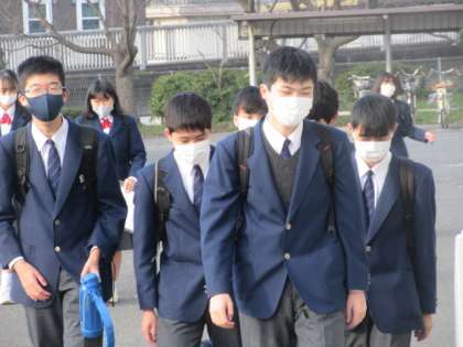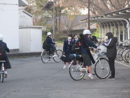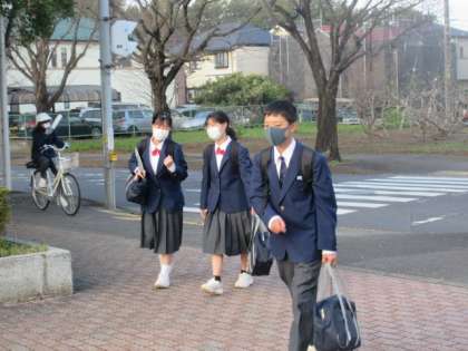 生徒は元気に登校。まだ風のないときは心地良いですが,これからは防寒対策が必要になってきます。朝の寒さに負けないで欲しいです。