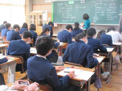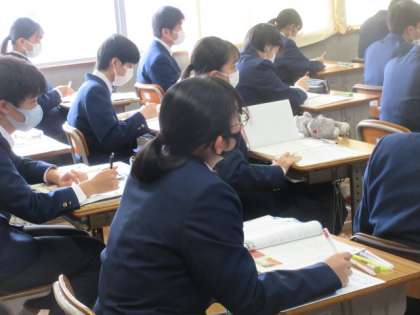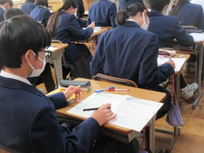 3年生の英語の授業は学習の確認。プリントを用いて整理していました。