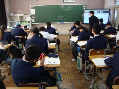 比例の学習で,エックスの変域に応じたグラフを作成していました。