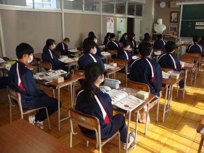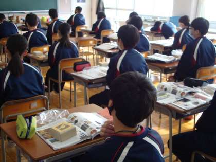 木彫り制作に向けて,木箱を見てイメージを膨らましたり説明を聞いたりしました。