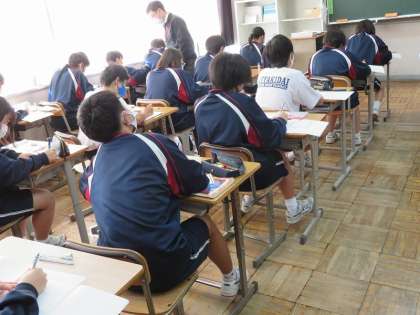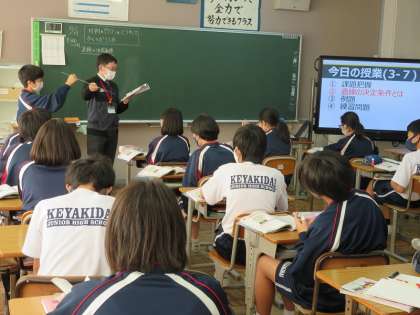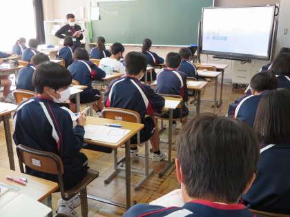 比例のグラフのかき方の学習で,直線はどうやって決まるかを,差し棒を使って,確認して,実際の問題を解いていました。