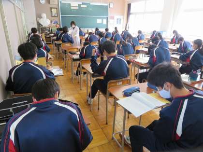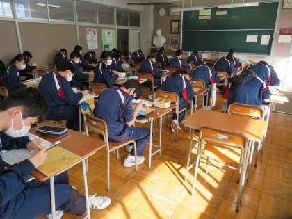 扇に絵を描く授業の最終段階に入っていました。完成間近の絵は素晴らしいものでした。