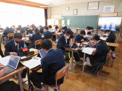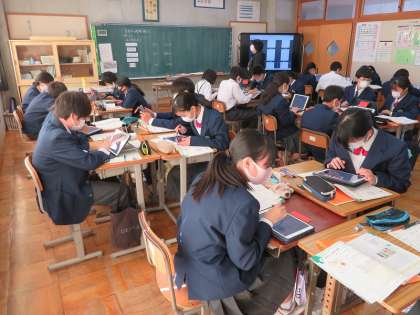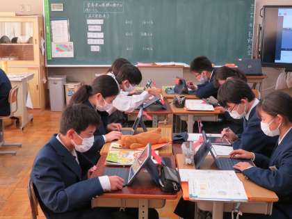 栄養素の種類と働きについて,タブレットを使い調べ,まとめていました。