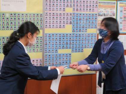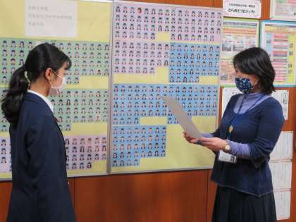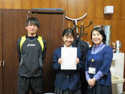 本校生徒が,守谷市中央図書館主催の「本の帯コンテスト2021」で,インパクト賞を受賞しました。そのため,中央図書館の館長をはじめ,図書館の関係者ら来校し表彰式を行いました。