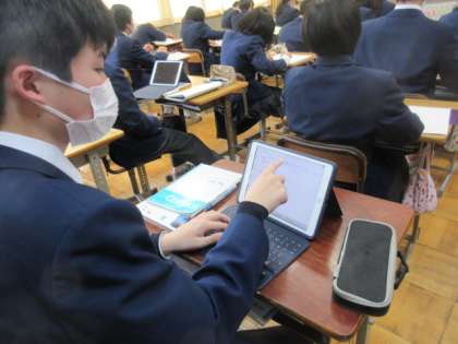 3年生の社会の授業は公民分野。市場経済についてまとめていました。