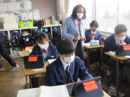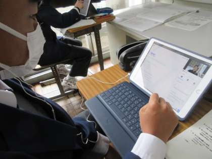 2年生の英語ではDMMによる全世界の方とのコミュニケーションを実施しています。今回は3回目とあって,流ちょうな英語でたくさん会話をしていました。