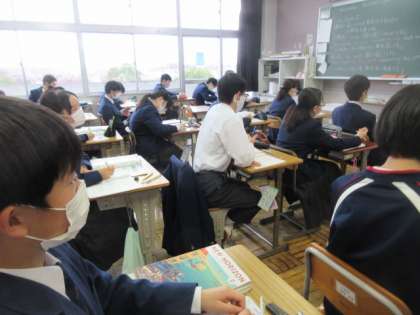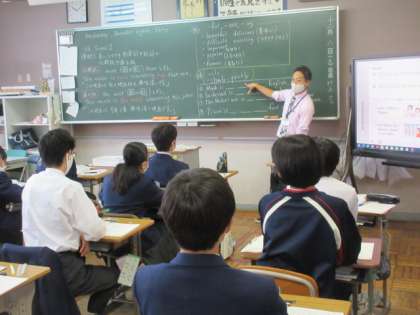 2年生の英語の授業。さまざまな英語表現を,例文を使って確認していました。