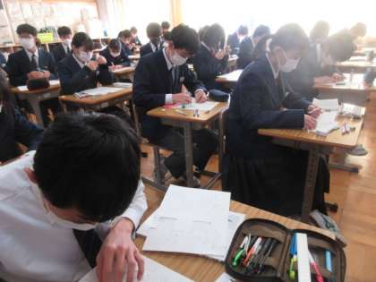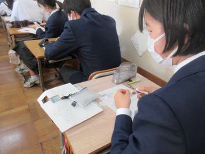 3年生の数学の授業は,三平方の定理。実際に紙を使って体感する活動です。皆集中して取り組んでいました。