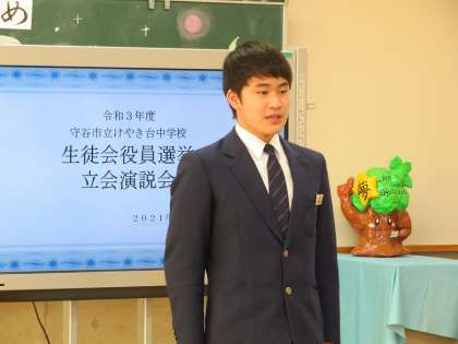 生徒会選挙の立会演説会が行われました。立候補者も責任者も一生懸命自分の思いを伝えようとしていました。とても素晴らしい立会演説会となりました。
