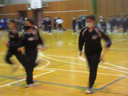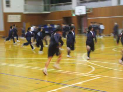 1年生の保健体育の授業は,体育館で実施。シャトルランを行っていました。