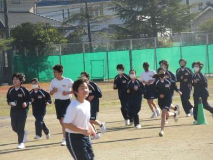 2年生の保健体育の授業は,青空の下での持久走。それぞれ,自分のペースを保ちながら頑張っていました。