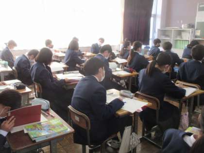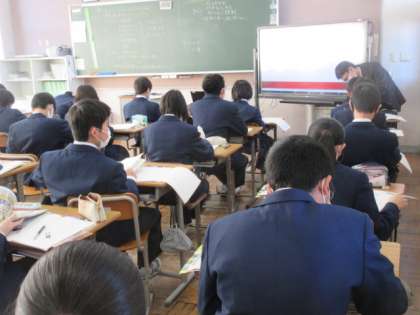 1年生の社会の授業は,オーストラリアについて。電子黒板を使って,学習の確認を行っていました。